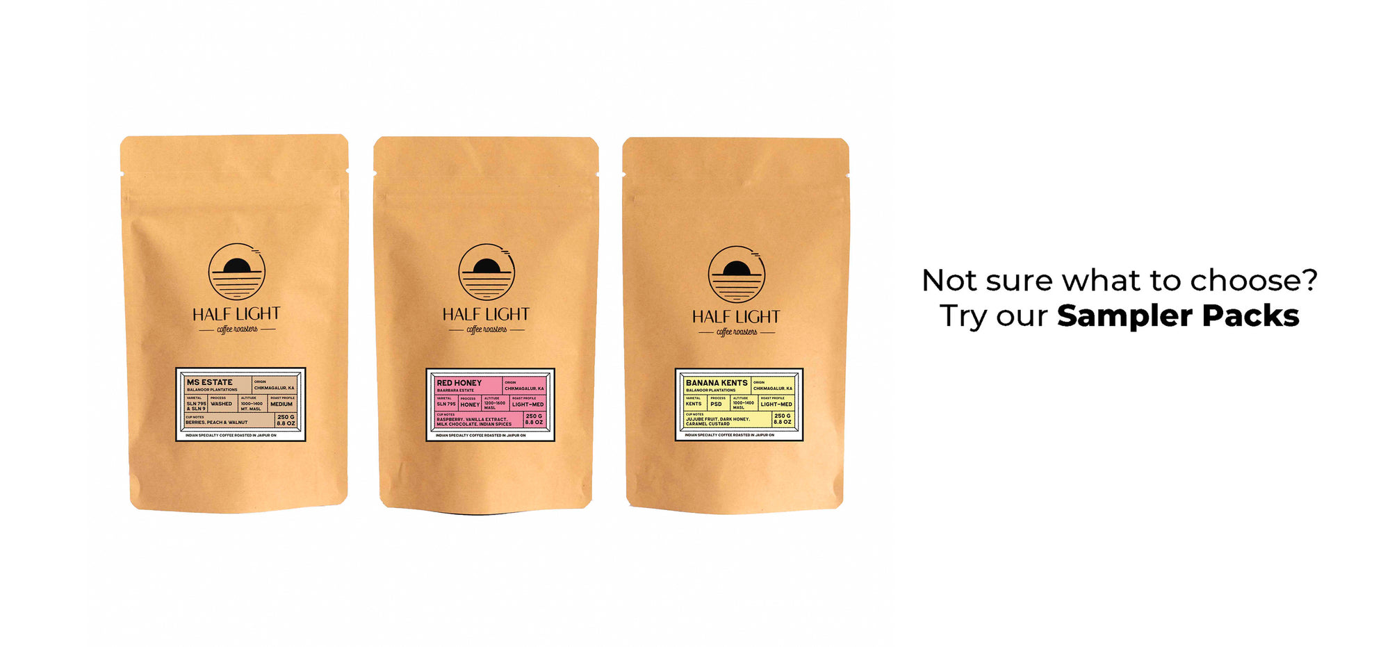 At Half Light, we believe in sourcing Indian Specialty Arabica directly from the farms and bringing them to your cup. These specialty coffees are directly sourced from the farmers in Karnataka and Tamil Nadu. We believe in starting from a great green bean that makes it a meticulous and precise process while roasting the coffee we serve, reflecting the hard work and passion the farmers put in growing each and every coffee fruit.