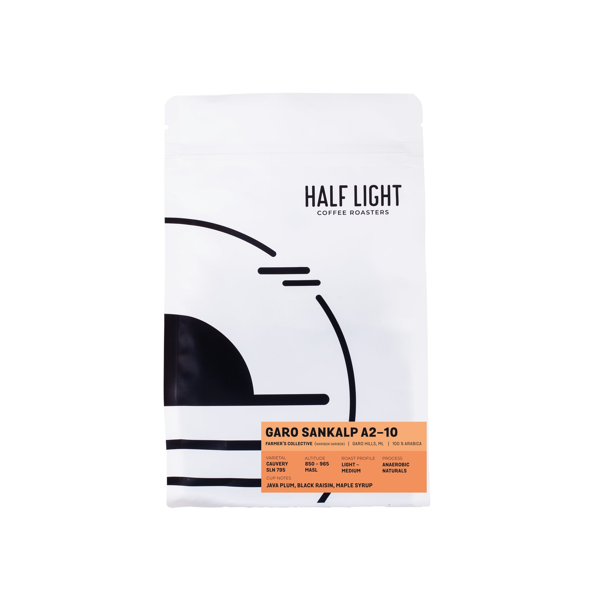Garo Sankalp A2-10 represents the evolving journey of Project Sankalp, an initiative driven by Waribok Daribok to push cup quality through structured processing and farmer collaboration. Grown at 850–965 MASL, this lot uses anaerobic natural processing, bringing added depth and intensity to the cup while retaining clarity. Roasted light–medium, it showcases java plum, black raisin, and maple syrup, with a rich mouthfeel and a layered sweetness that unfolds as it cools.